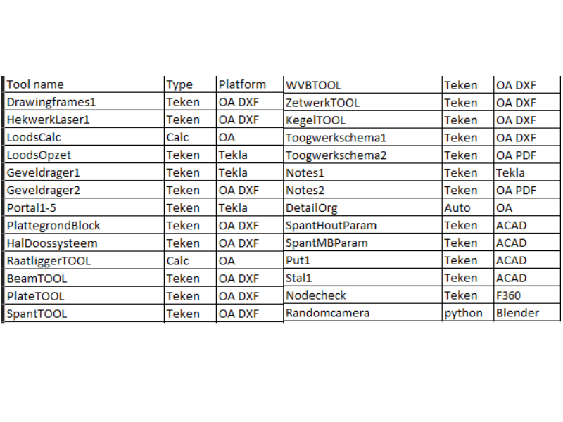 Mijn programma’s werken onafhankelijk van andere softwarepakketten en zijn gebaseerd op het .net framewerk. Integratie met andere softwarepakketten zoals die van Tekla, Autodesk en andere leveranciers is mogelijk op basis van in-house ontwikkeling en afhankelijk van de toegankelijkheid tot de API, beperkt door de licenties die in jouw eigen bezit zijn.