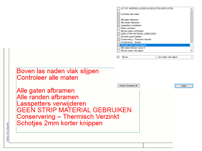Een gereedschap om standard notities toevoegen binnen Tekla Structures tekeningen