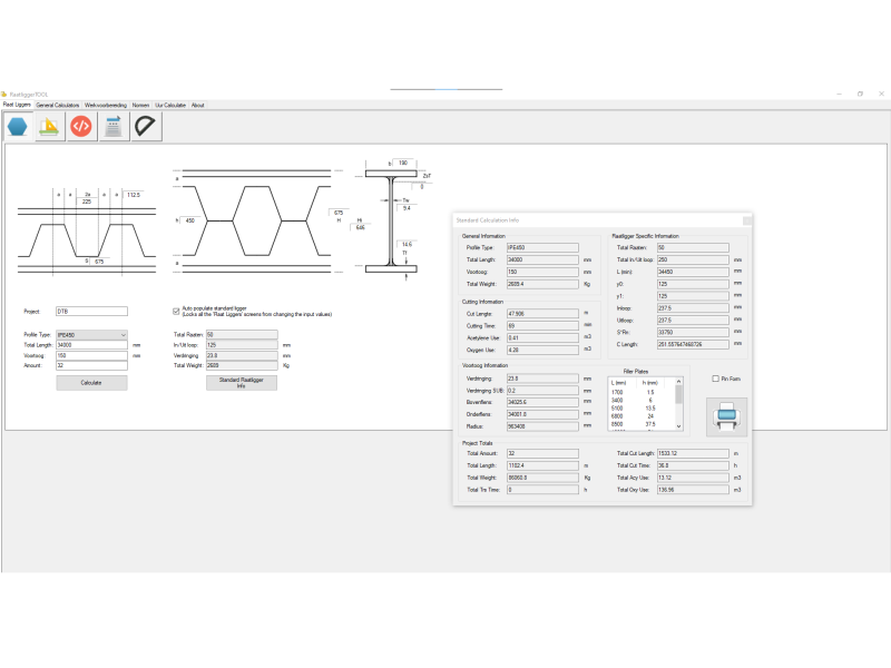 Een calculatie en werkvoorbereiding gereedschap voor de productie van raatliggers