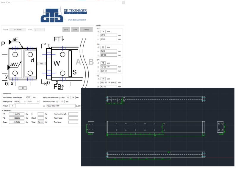 Een parametrisch gereedschap om een complete balk te genereeren met kop/voet plaat, schotten en gaten