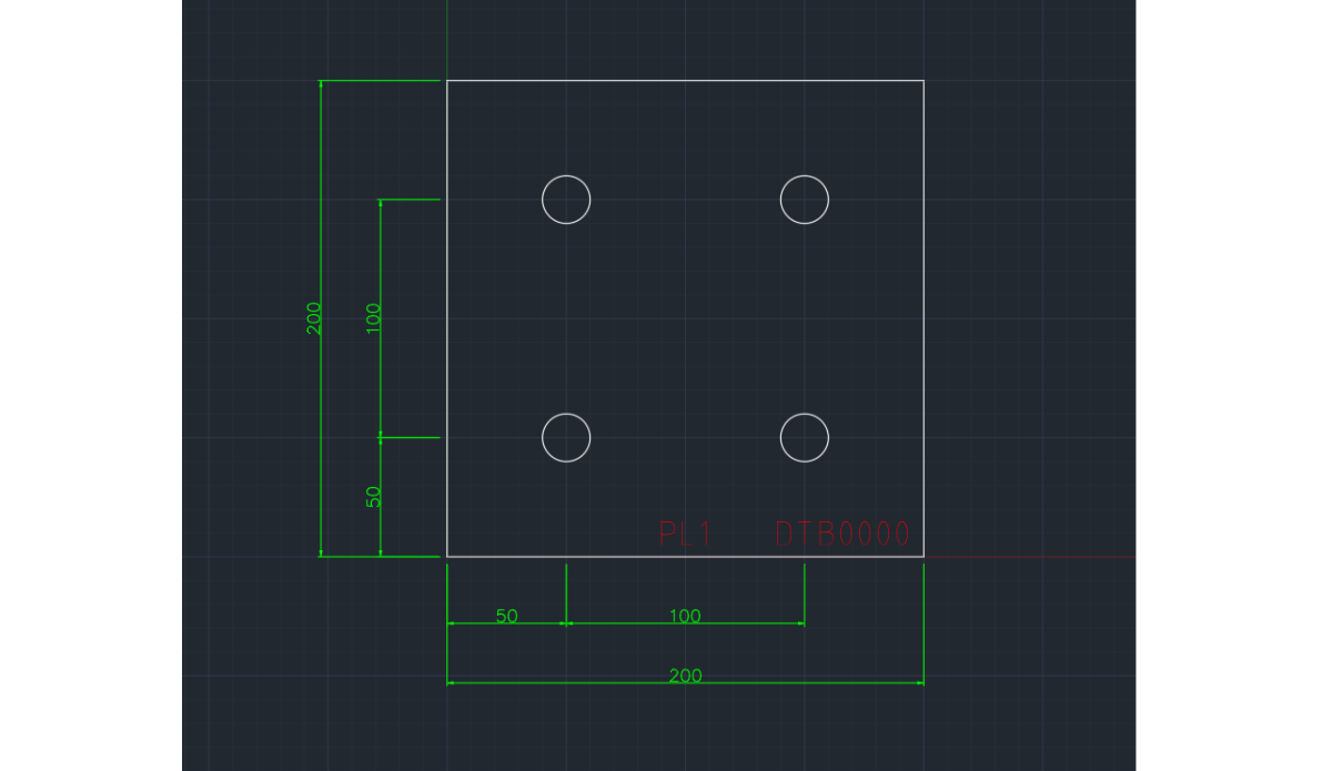 Met dit gereedschap kan je een tekening van een vierkant plaat genereren klaar voor het laser/plasmasnijden met gaten en POS informatie. Snij laag 7 (WIT), arcering laag 2 (ROOD).